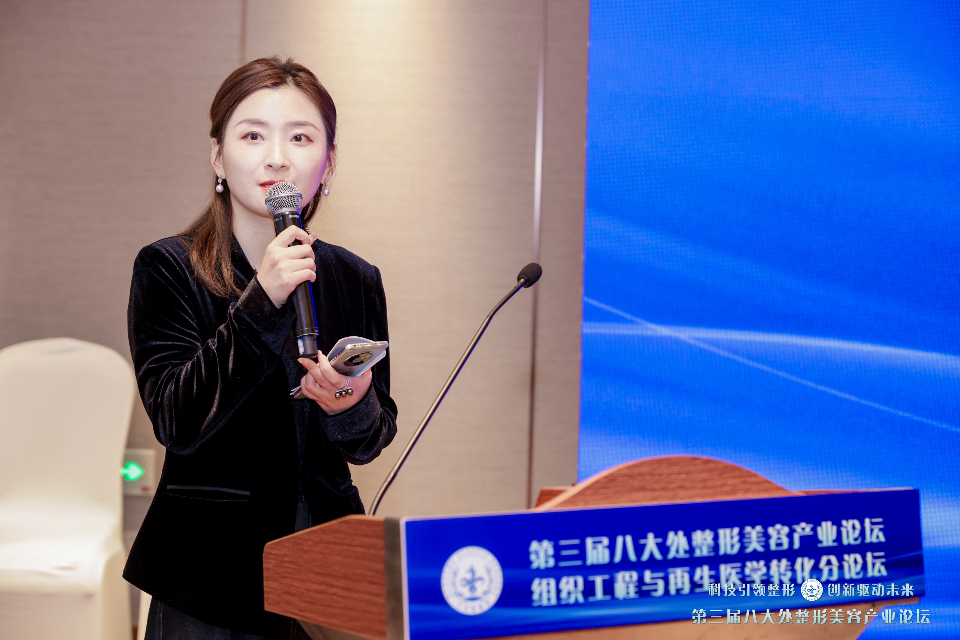 北京帝康医药投资管理有限公司总经理助理赵慧女士代表王海滨教授发表了题为《脱细胞基质生物材料的应用及其产业化》的演讲,她详细阐述了脱细胞基质分类、生物学功能及技术难点。重点讨论了其在骨、软骨、血管等组织修复中的应用,以及作为医美填充材料的潜力。此外,还介绍了脱细胞基质材料的产业化现状、已上市产品及在研项目,并通过动物试验和临床案例验证了其安全性和有效性。