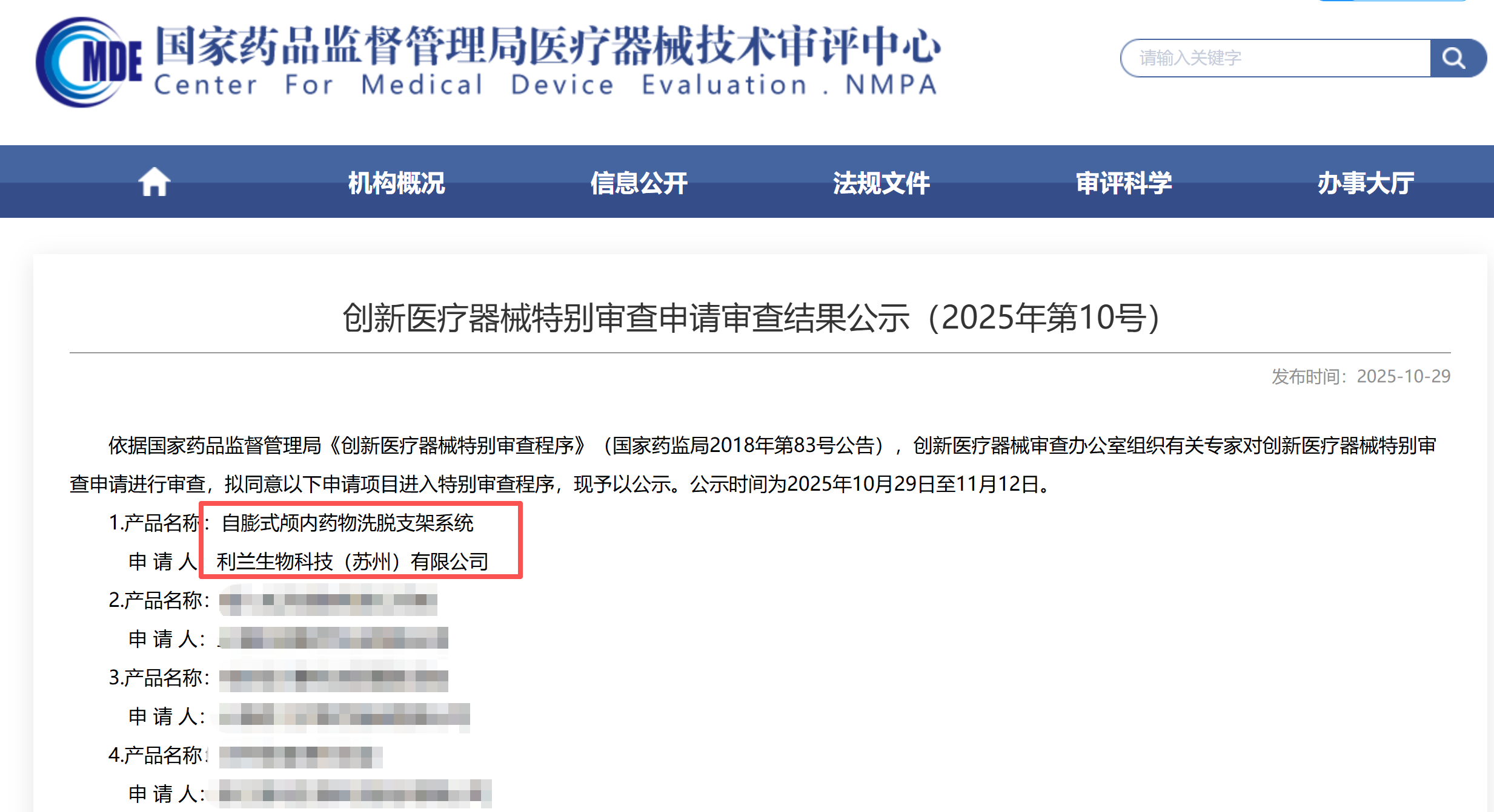 近日,利兰生物科技(苏州)有限公司自主研发的产品【自膨式颅内药物洗脱支架系统】正式进入国家创新医疗器械特别审批程序(绿色通道),奥泰康提供创新申报服务。