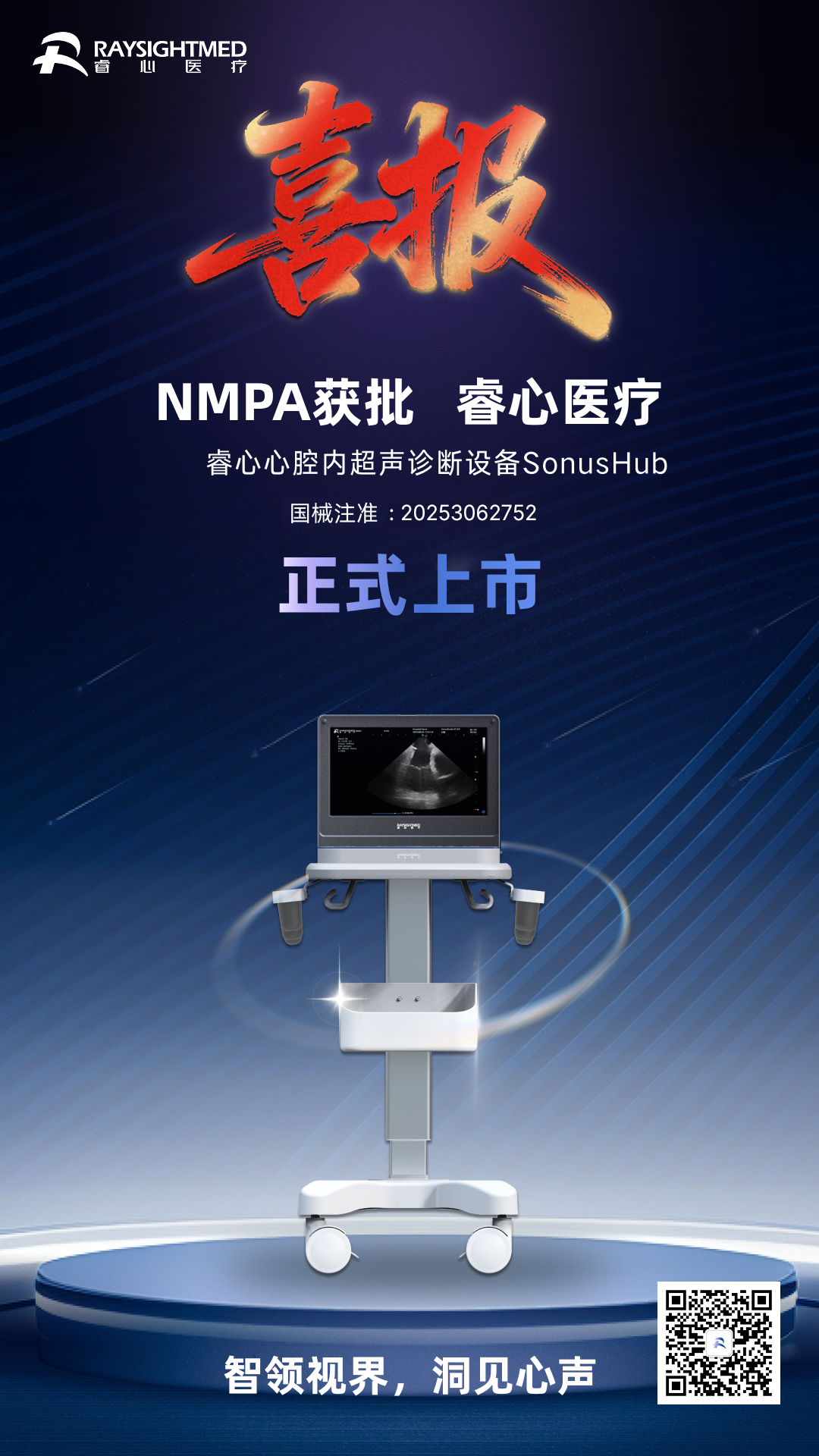 1月5日,睿心医疗心腔内超声诊断设备SonusHub正式获得中国国家药品监督管理局(NMPA)批准上市(国械注准20253062752)。