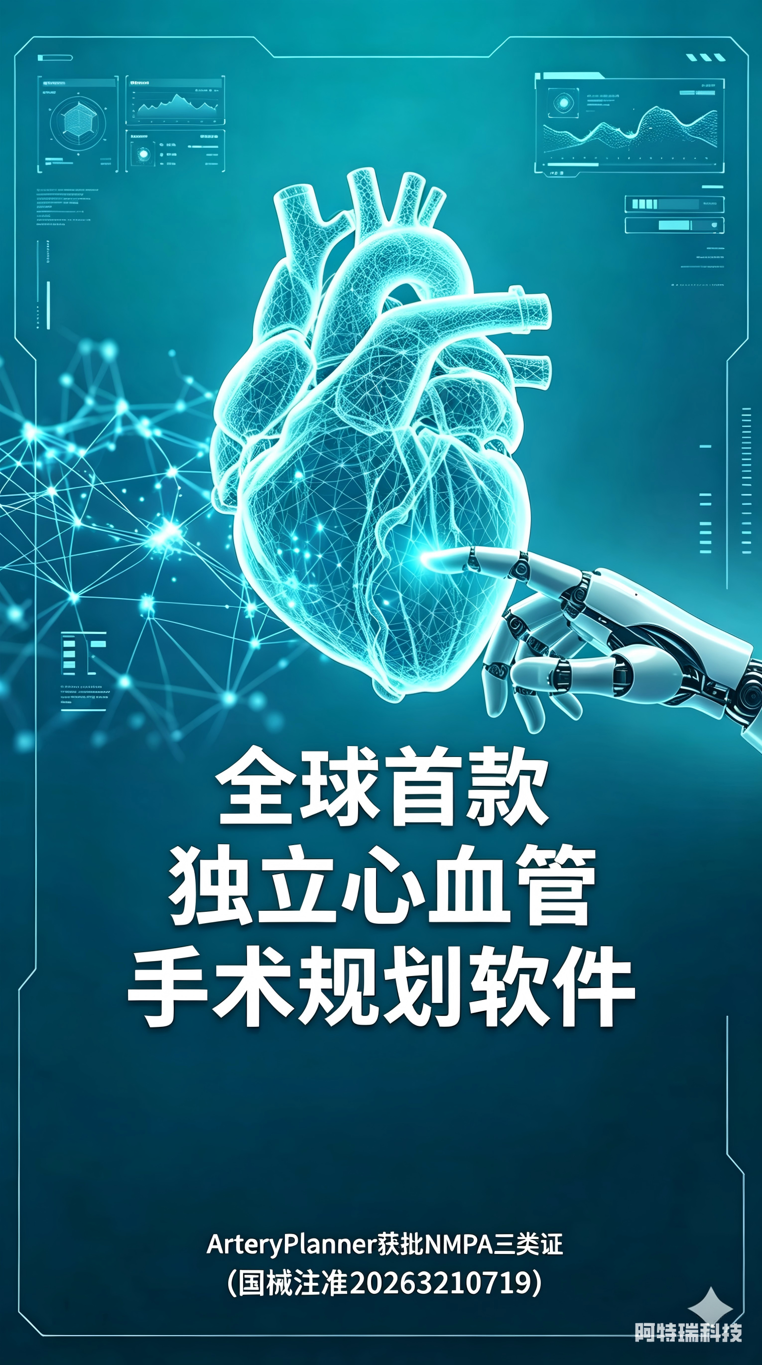 MA成果[庆祝] 奥泰康助力阿特瑞「冠状动脉CT血流储备分数计算软件」获批上市[烟花] ——系本年度助力获得的第6张三类注册证🌈 ——【全球首款】以独立软件形式获批的心血管手术规划系统[太阳]2026年4月9日,经国家药品监督管理局公示,杭州阿特瑞科技有限公司自主研发的冠状动脉CT血流储备分数计算软件(国械注准20263210719)获得NMPA批准上市,奥泰康提供MA解决方案。该产品是全球首款以独立软件形式获批的心血管手术规划系统。