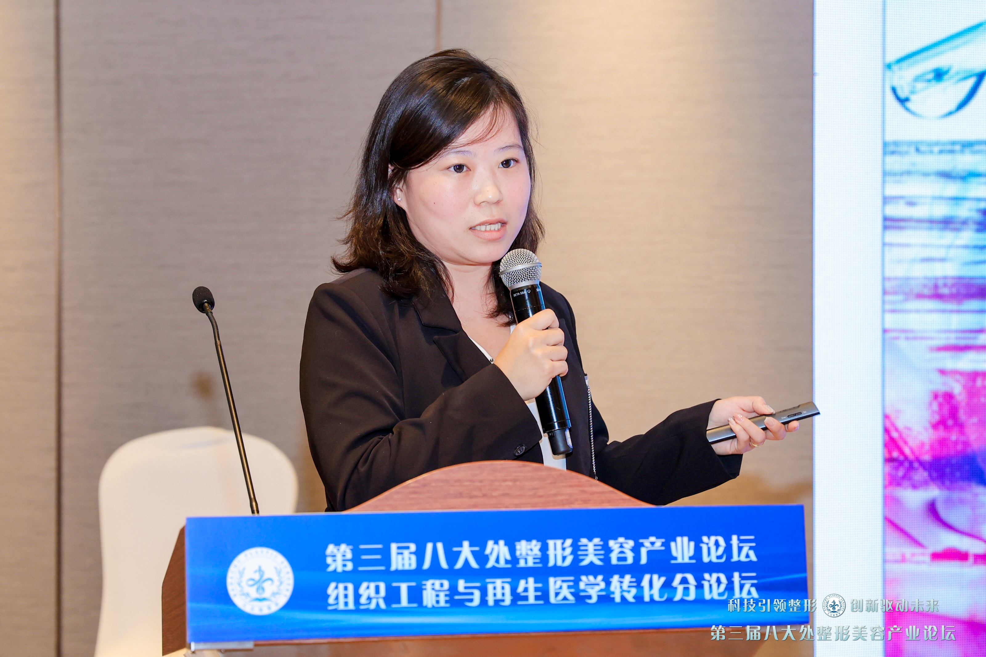 北京帝康医药投资管理有限公司总经理助理赵慧女士代表王海滨教授发表了题为《脱细胞基质生物材料的应用及其产业化》的演讲,她详细阐述了脱细胞基质分类、生物学功能及技术难点。重点讨论了其在骨、软骨、血管等组织修复中的应用,以及作为医美填充材料的潜力。此外,还介绍了脱细胞基质材料的产业化现状、已上市产品及在研项目,并通过动物试验和临床案例验证了其安全性和有效性。