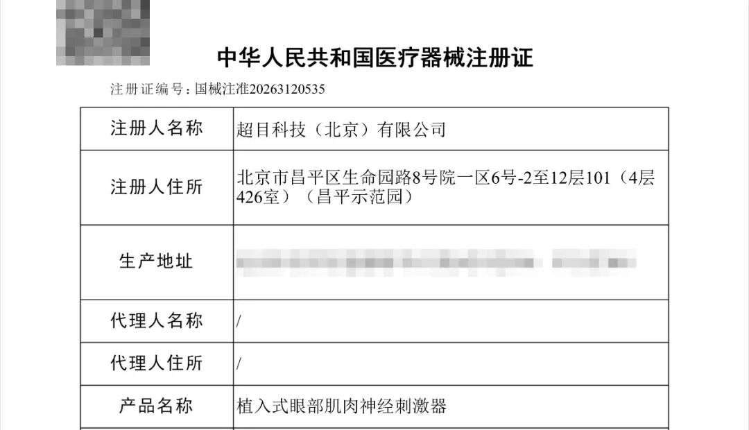 MA成果[庆祝] 奥泰康助力超目科技「植入式眼部肌肉神经刺激器」获批上市[烟花] ——系本年度助力获得的第2张三类注册证🌈 ——中美双重认证、全球首个眼球震颤治疗方案[太阳]2026年3月13日,经国家药品监督管理局公示,超目科技(北京)有限公司自主研发的植入式眼部肌肉神经刺激器(国械注准20263120535)获得NMPA批准上市,奥泰康提供MA解决方案。